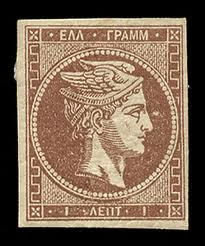 Τα πρώτα γραμματόσημα της Ελλάδας ήταν μια σειρά 7 γραμματοσήμων σε 7 διαφορετικούς χρωματισμούς που είχαν επάνω τους το κεφάλι του Ερμή με το φτερωτό καπέλο, τον πέτασο.